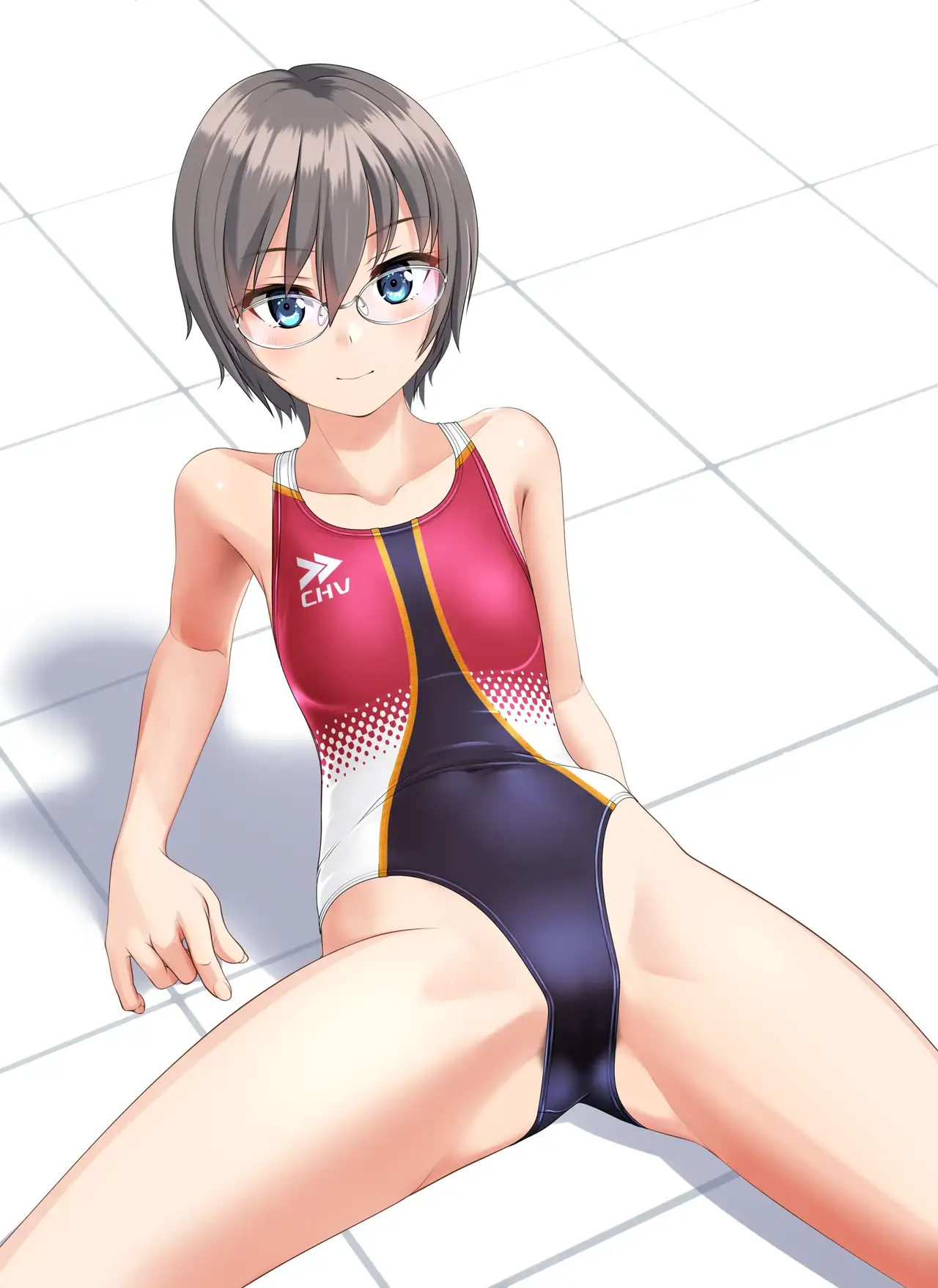 [たかふみ] 競泳メガネさん:座り構図習作